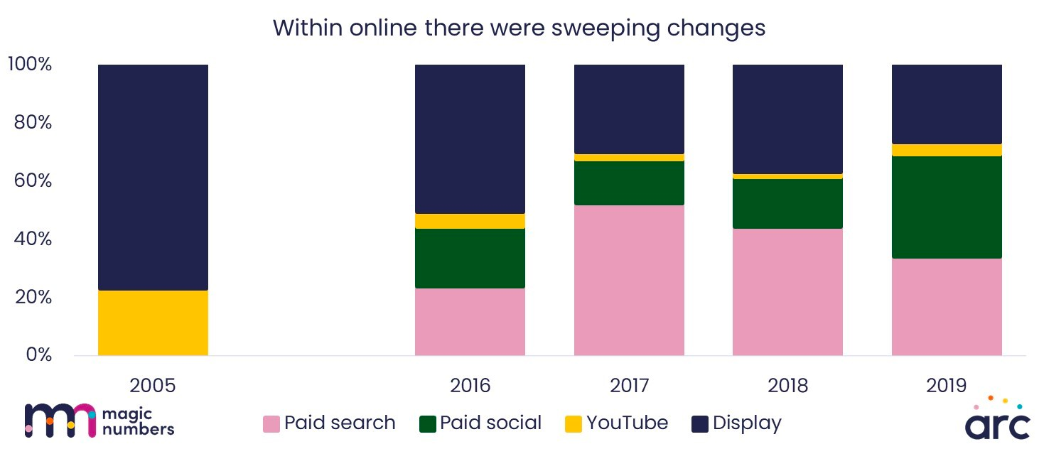 Combining Bob's research on Programmatic with Dr Kite's insights on online media mix on effectiveness, is a double-whammy blow for Programmatic being your lead digital channel. As the % of online budget spent on Display reduced in favour of Paid Social / YouTube and Search, the effectiveness of digital advertising increased.